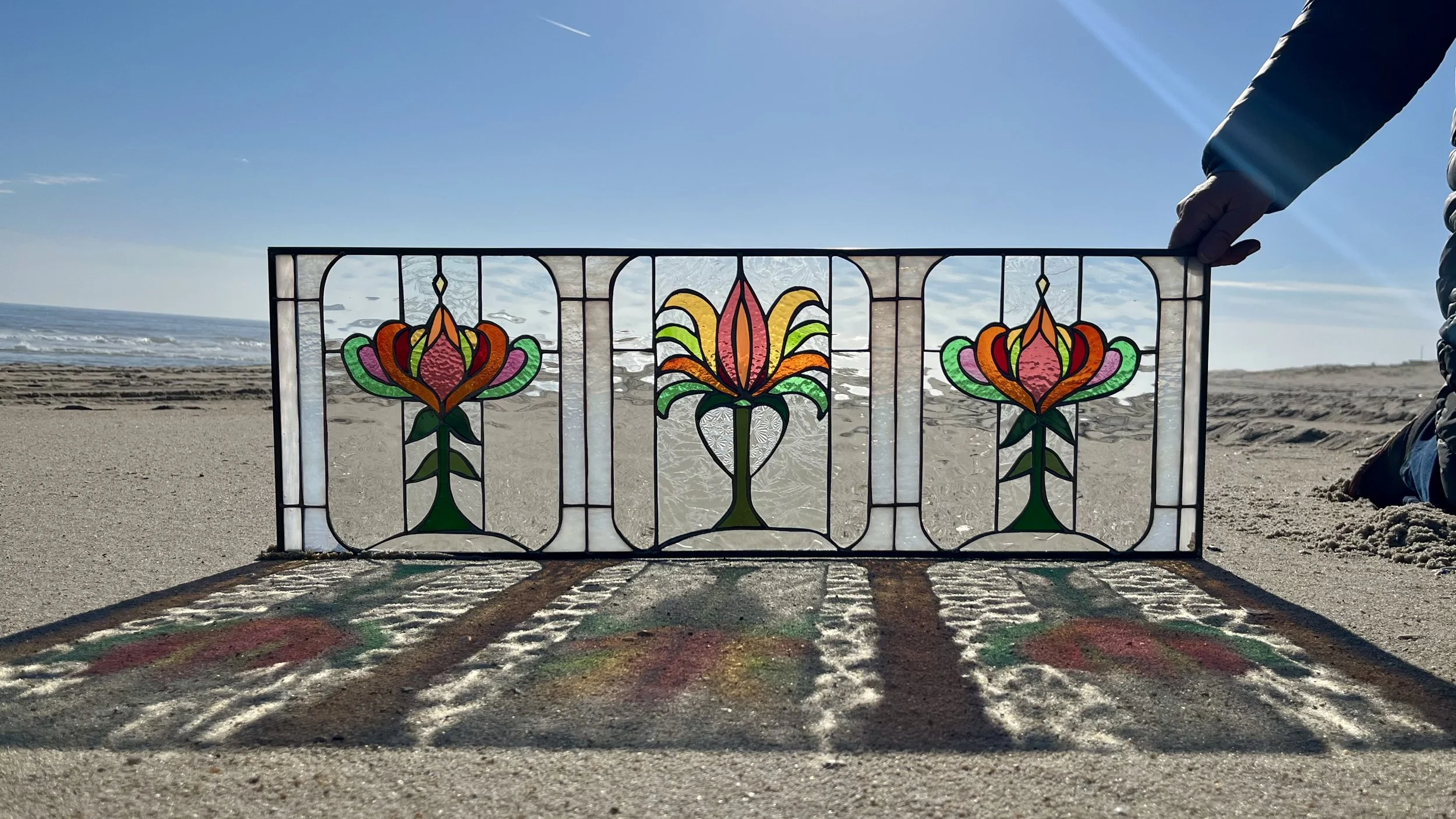 Once initial deposit is paid and the design is approved, we will begin to cut the glass. We offer our clients a chance to see the panel before it is completely assembled and give it a "cut approval". If you would like to make minor changes to the colors etc. at this time, we will accommodate you. Major changes require an extra fee.